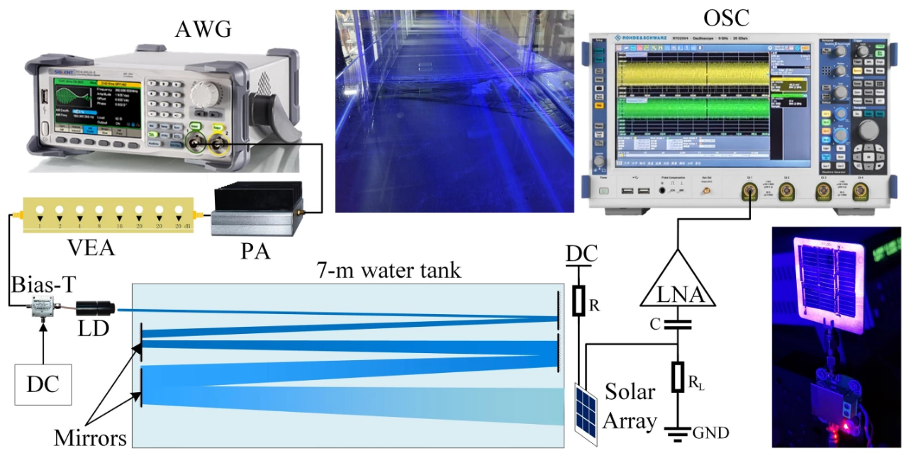 Исследователи показали, что высокая скорость передачи данных может быть достигнута при использовании массива солнечных батарей в качестве детектора в подводной системе беспроводной оптической связи. Jing Xu, Zhejiang University
