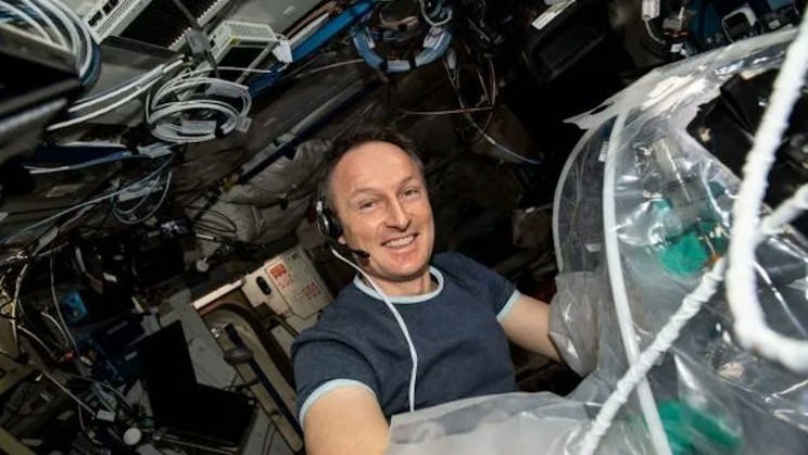 Астронавт Маттиас Маурер смешивает бетон в космосе.Credit: ESA/NASA