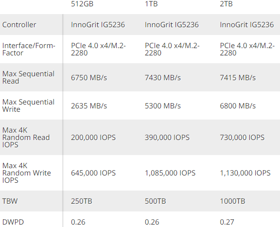 Доступные в конфигурациях 512 ГБ, 1 ТБ и 2 ТБ, накопители Mushkin Vortex Redline основаны на контроллере InnoGrit Rainer IG5236 в паре с памятью 3D TLC NAND. Накопители выпускаются в форм-факторе M.2 2280, имеют интерфейс PCIe 4.0 x4.