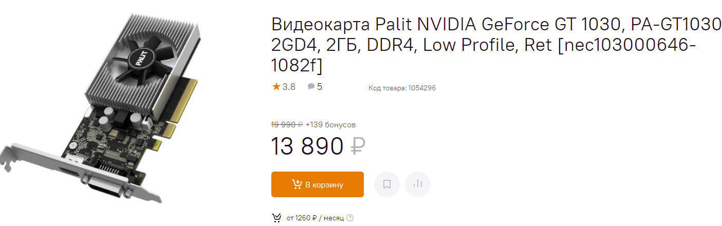 А вообще последние наши обзоры видеокарт были весьма однобоки, предлагая вам ознакомиться исключительно с дорогостоящими моделями. Сегодня мы исправим это безобразие, обратившись к бюджетным графическим чипам. Помните, что цены на них сильно завышены, но с этим поделать мы ничего не можем. Начнём. Если вы хотите сэкономить, но получить доступ к старым играм и даже многопользовательским шутерам, то лучшим выбором будет GeForce GT 1030. Карта стоит около 14 тысяч рублей и предназначается для тех, кто не планирует на время отдохнуть от блокбастеров, посвятив себя неугасающему ретро. Кстати, она отлично тянет GTA 5, а что ещё нужно?