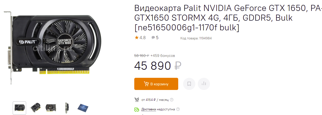 GeForce GTX 1050 Ti обойдётся вам в 38 тысяч, а текущая цена почти на 15 000 дороже февральской. Если вам уж очень захотелось поиграть, то вы должны помнить о компромиссах, ведь несмотря на высокую цену, графические настройки придётся снижать, а разрешение выше 1080р не выставить. GeForce GTX 1650 немного быстрее, но и стоит она дороже, поэтому здесь всё зависит от глубины вашего кошелька. Покупать данную видеокарту с надеждой на длительный запас прочности не нужно, а вот спокойно расслабиться в ожидании разрешения всех мировых кризисов один год вполне можно. Вообще, если у вас есть 47 тысяч рублей, и вы хотите видеокарту – берите Radeon RX 6500 XT. Она ощутимо быстрее GeForce GTX 1650, при этом стоит столько же. Надеемся вы не верите в рассказы диванных аналитиков относительно проблем с драйверами и падением количества кадров в играх?