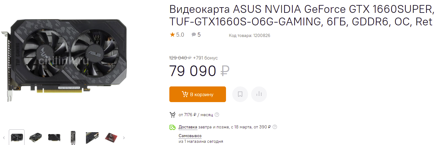 GeForce GTX 1660 – это совсем другой уровень производительности. Здесь уже можно не волноваться о настройках целых два года. Мечтать о разрешении 2К не приходится, но и 1080р достаточно, тем более что игровые студии ушли из России, поэтому какое-то время играть придётся с английской озвучкой. Что любопытно, GeForce GTX 1660 Ti дороже всего на тысячу рублей, хотя намного быстрее. Мы советуем присмотреться именно к этой модели. Кстати, есть ещё GeForce GTX 1660 SUPER, которая скинула 50 000 рублей и кажется нам отличным предложением.