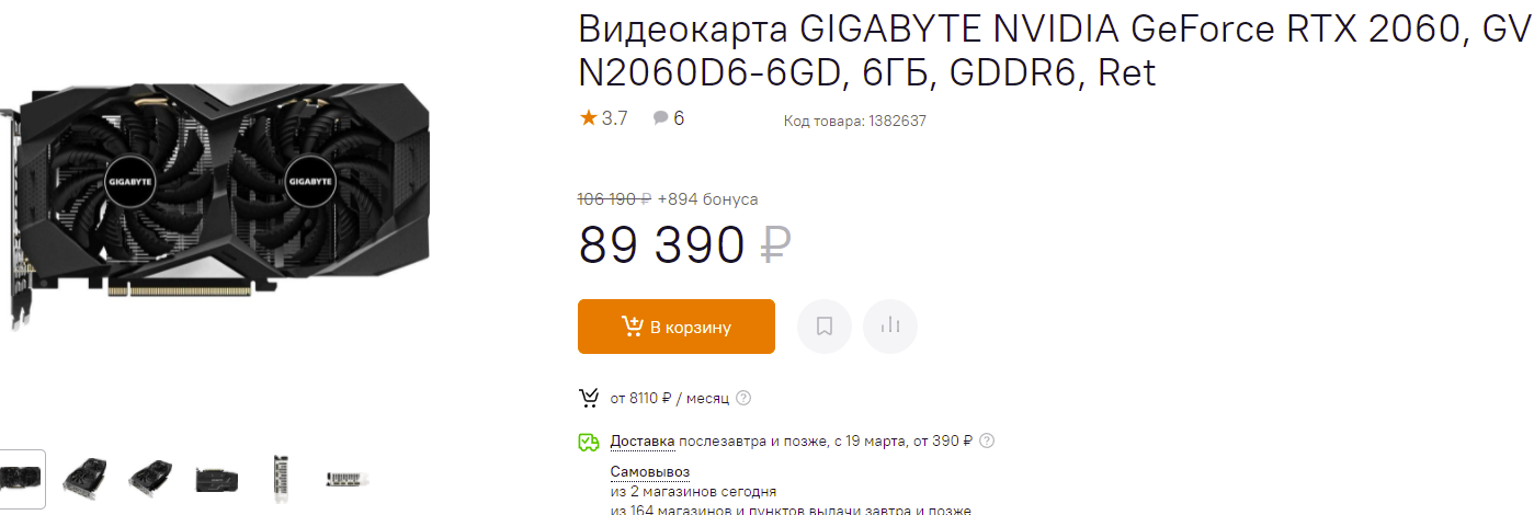 GeForce RTX 2060 – это неумирающая классика, ведь сама видеокарта будет актуальна ещё несколько лет, хотя стоит она неприлично дорого. В комплекте трассировка лучей и максимальные настройки графики в 1080р. Слегка выходит за 100 000 новенькая Radeon RX 6600 XT. С нашей точки зрения, это лучшая видеокарта 2021 года, которая даже сегодня намного выгоднее своих прямых конкурентов. Если у вас завалялись 102 790 рублей – бегом в магазин.