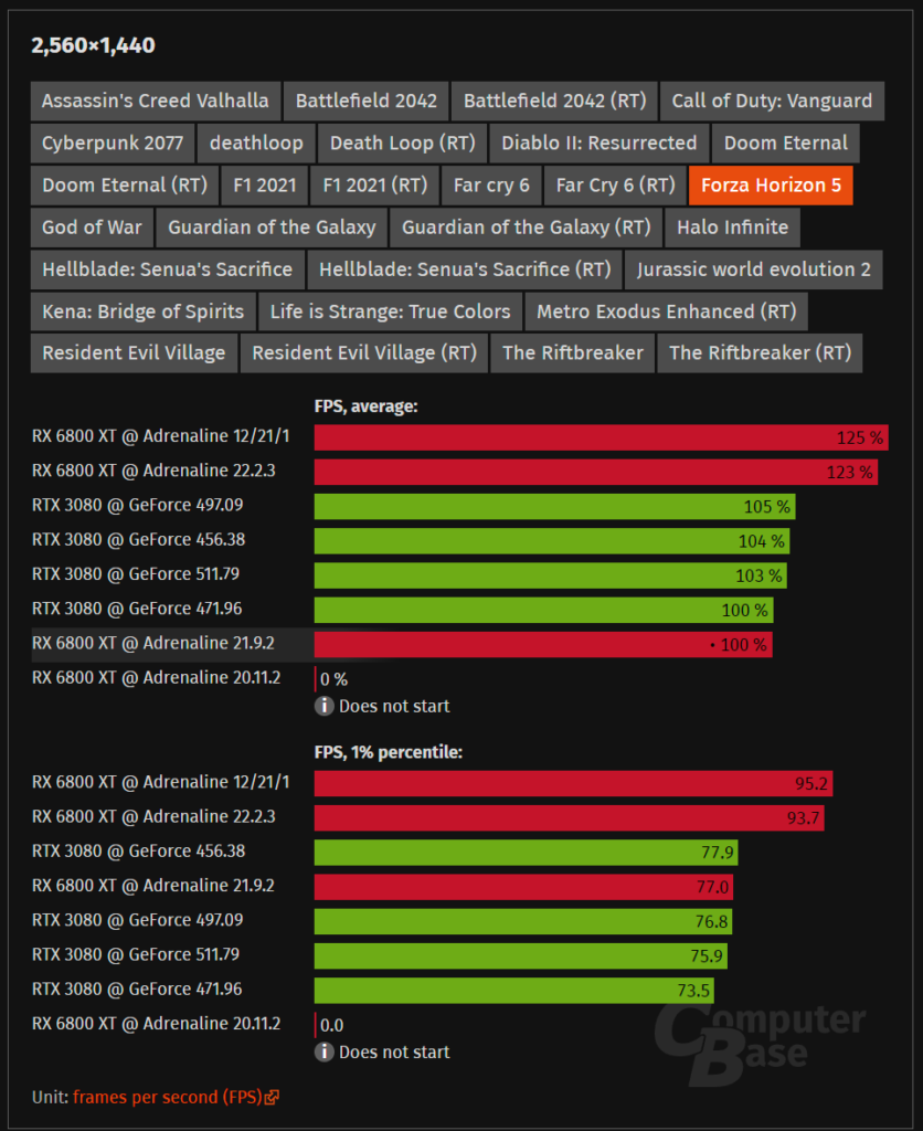 Если вы полагаете, что рост количества кадров в драйверах AMD Adrenaline доступен только с трассировкой лучей, то сильно ошибаетесь. Так, в Forza Horizon 5 и Assassins' Creed Valhalla было зафиксировано увеличение количества fps на 24% и 30% соответственно. Это означает, что повышение показателей графического процессора с годами возможно, вот только далеко не всем это выгодно. Здесь всё очевидно, ведь увеличив количество кадров на видеокарте за пару лет на 10% вы ставите перед собой сложную задачку. Во-первых, сложно продавать более дорогие модели. Во-вторых, нужно же ещё бить рекорды на новом поколении графических чипов.