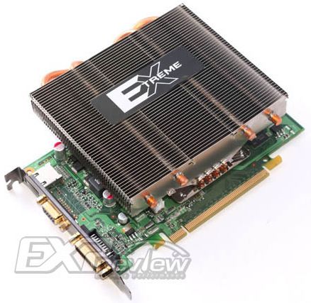 На задней панели расположились порты DVI и D-Sub с позолоченными контактами, а также выход HDMI. Номинальные частоты видеокарты равны 550/1340/3400 МГц. Судя по частоте памяти, видеокарта оснащается микросхемами типа GDDR-5. Объём памяти не уточняется, у эталонной версии GeForce GT 240 он равен 512 Мб или 1 Гб. Уровень энергопотребления видеокарты не превышает 69 Вт, а потому пассивная система охлаждения вполне ей подходит.