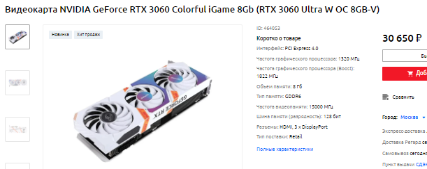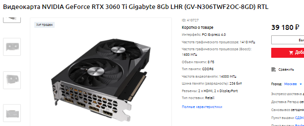 За 38 тысяч рублей на полке лежит GeForce RTX 3060 Ti. Если все указанные выше видеокарты предназначались для энтузиастов, то данный графический чип создан для обычных геймеров. Согласимся, что в последнее время нам с вами приходится платить больше, ну а сама GeForce RTX 3060 Ti имеет как достоинства, так и недостатки. Например, она получила 256-битную шину, что очень неплохо для такого уровня, но всего 8 Гб видеопамяти. Пока на производительность в играх такое количество памяти критического влияния не оказывает, но кто знает, какие требования к видеокартам предъявят создатели игр в 2023 году. Для разрешения 2К должно хватить, а мы ожидаем снижения цены на GeForce RTX 3060 Ti в течение следующих нескольких месяцев.