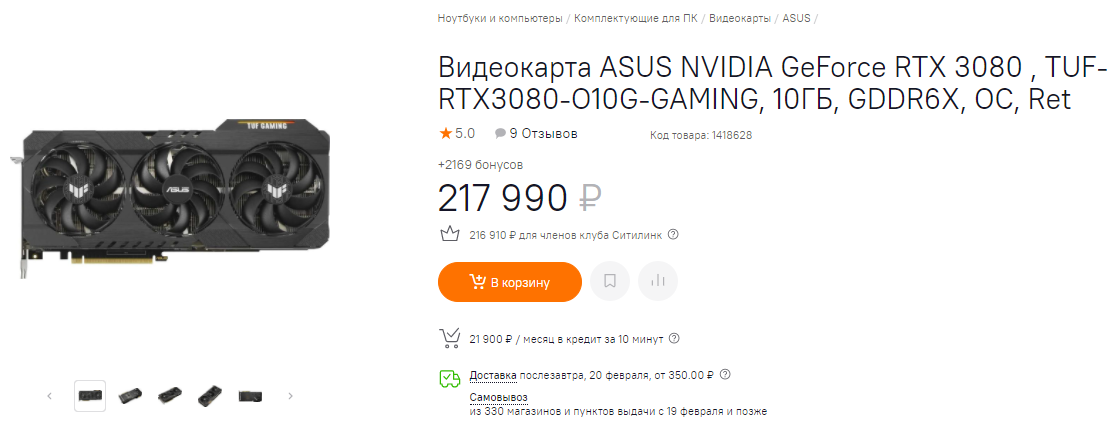 GeForce RTX 3080 могла бы стать лидером по добыче и доходности, вот только цена на неё составляет 218 тысяч рублей. Если учесть доход в размере 10.5 доллара в сутки и почти 320 долларов в месяц, то столь дорогое решение окупится у вас за более чем 9 месяцев.