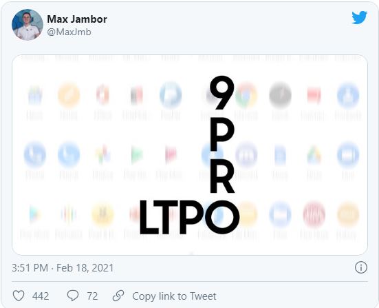 В преддверии запуска стали появляться утечки информации о характеристиках устройства. Сегодня один из типстеров, Макс Джамбор, в своем твите опубликовал изображение, в котором имеются слова «LTPO» и «9 Pro», что указывает на то, что вариант Pro будет иметь дисплей LTPO. Если вы не знаете, LTPS - это низкотемпературный поликремний, а LTPO - это низкотемпературный поликристаллический оксид.