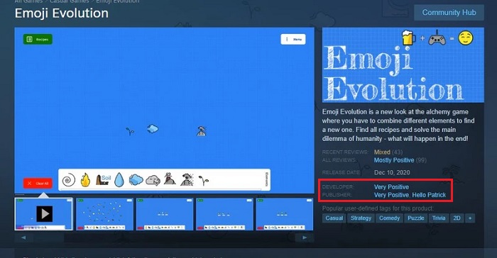 Но хитрые жулики нашлись даже здесь: один из инди-разработчиков решил назвать свой «коллектив» Very Positive (Очень положительные), очевидно, преследуя цель введения пользователей Steam в заблуждение. Его проект под названием Emoji Evolution вышел в Steam в декабре и получил «Смешанные» отзывы. Всё бы ничего, но чуть ниже — в описании разработчика и издателя — прописан его вводящий в заблуждение коллектив Very Positive.