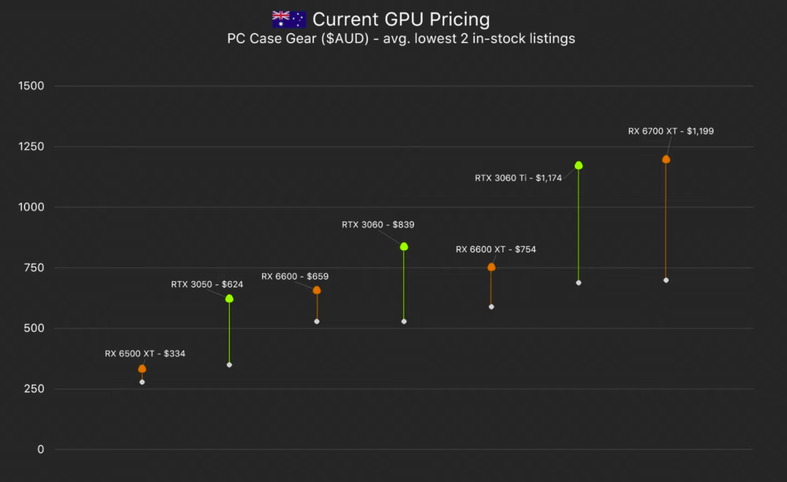 Между GeForce RTX 3050 и GeForce RTX 3050 Ti как минимум 20% разницы в производительности, а стоимость лэптопов почти идентичная. А ведь есть ноутбуки с бюджетными графическими чипами типа GeForce MX 450, которые пытаются выдавать за игровые. Словом, проблем хватает, поэтому ребята с канала Optimum Tech решили подойти к делу выбора правильной видеокарты ответственно. В первую очередь они изучили текущие цены. В данном случае пришлось оценить стоимость нескольких популярных моделей на рынках США, Европы и даже Австралии.