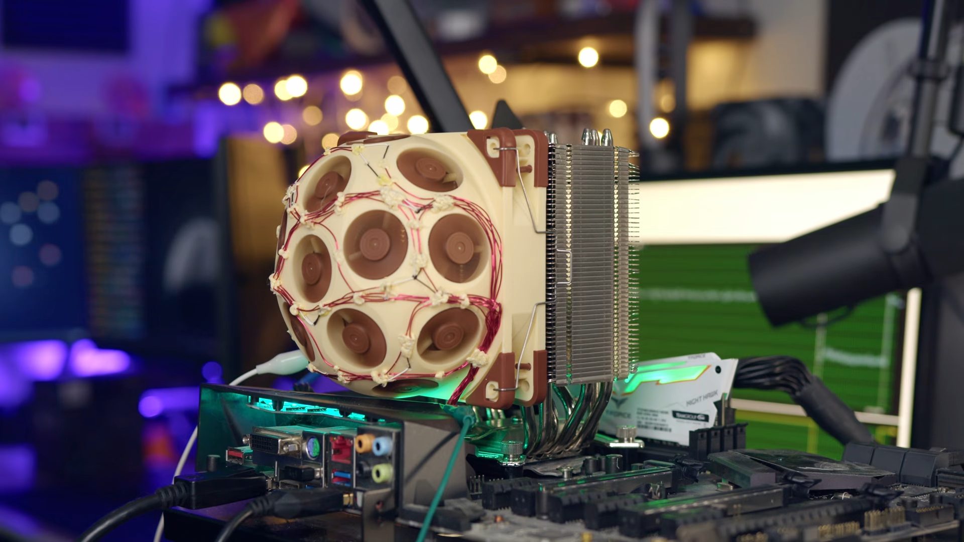 Этот странный вентилятор не уступил NF-A12x25 при охлаждении процессора Intel Core i7-7700K, разогнанного до 4,9 ГГц. Для охлаждения использовался кулер NH-U12A. Тестирование длилось 20 минут. Процессор разогрелся до 69,0…69,5 градусов по Цельсию, как со стандартным вентилятором NF-A12x25, так и с куполообразным.