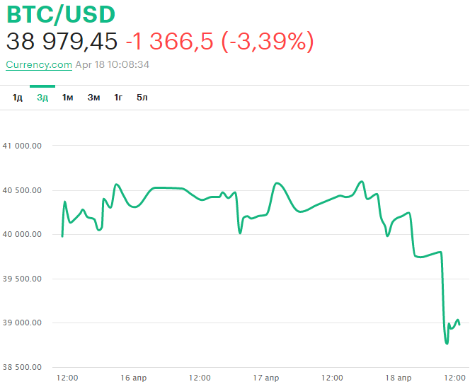 Ну а пока все вокруг пытаются понять, чего ждать от властей, и какие вообще будут требования к держателям криптовалют, Биткоин снова рухнул. Тревожные звоночки начали поступать поздно вечером в воскресенье. Учтите, что последние дни цифровое золото и так находилось не в лучшем положении и торговалось на отметке слегка выше 40 000 долларов. Последняя попытка удержаться случилась в час ночи, а уже в два курс Биткоина начал снижаться. На момент написания данного материала за 1 монетку давали меньше 39 000 долларов. Кому-то это может показаться незначительным, вот только эксперты констатируют, что Биткоин находится на пороге очередного обвала. Рисуются графики с точками сопротивления, но всё это может оказаться бесполезным, ведь сегодня нет никаких причин ожидать роста курса цифрового золота.