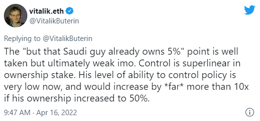 Руководство Twitter пока не сформировало решения по предложению Маска, который готов купить компанию примерно за $43 млрд, по $54,2 за акцию. При этом совет директоров включил юридический механизм, который защитит компанию от недружественного поглощения, которое Маск может попытаться реализовать в случае официального отказа совета директоров принять его условия сделки. Другими словами, интрига усиливается, а пока некоторые источники ожидают, что на этой неделе у миллиардера могут появиться как союзники, так и конкуренты в попытках купить оставшиеся вне его контроля акции Twitter.
