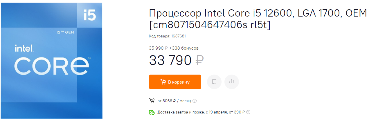 В данном материале предлагаем присмотреться к вполне бодрым середнякам, которые отлично справляются со всеми задачами и могут стать основой игрового компьютера для тех, кто уже купил неплохую видеокарту. Начать предлагаем с Core i5-12600. Это отличный кандидат на высокопроизводительную сборку за дёшево. Только представьте: вам не нужна дорогая материнская плата, скоростная оперативная память и продвинутая система охлаждения. В большинстве случаев весь этот комплект будет стоить дешевле, чем только одна ОЗУ DDR5-5200. Цена немного не соответствует среднему классу, но и преимущества системы с тактовой частотой до 4.9 ГГц видны невооружённым взглядом.