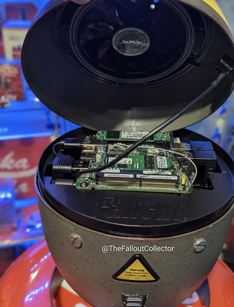 В числе претендентов на звание самого интересного авторского ПК появился новый соперник. Пользователь с ником The Fallout Collector, фанат игры Fallout, что неудивительно, недавно приобрёл коллекционную мини-ядерную бомбу из Fallout Anthology. Из неё, после долгих кропотливых работ, получился настоящий персональный компьютер, способный запускать старые простенькие игры по типу The Elder Scrolls V: Skyrim. Притом корпус и внешний вид остались оригинальными: монитор, клавиатура и мышка буквально подключены к ядерной бомбе.