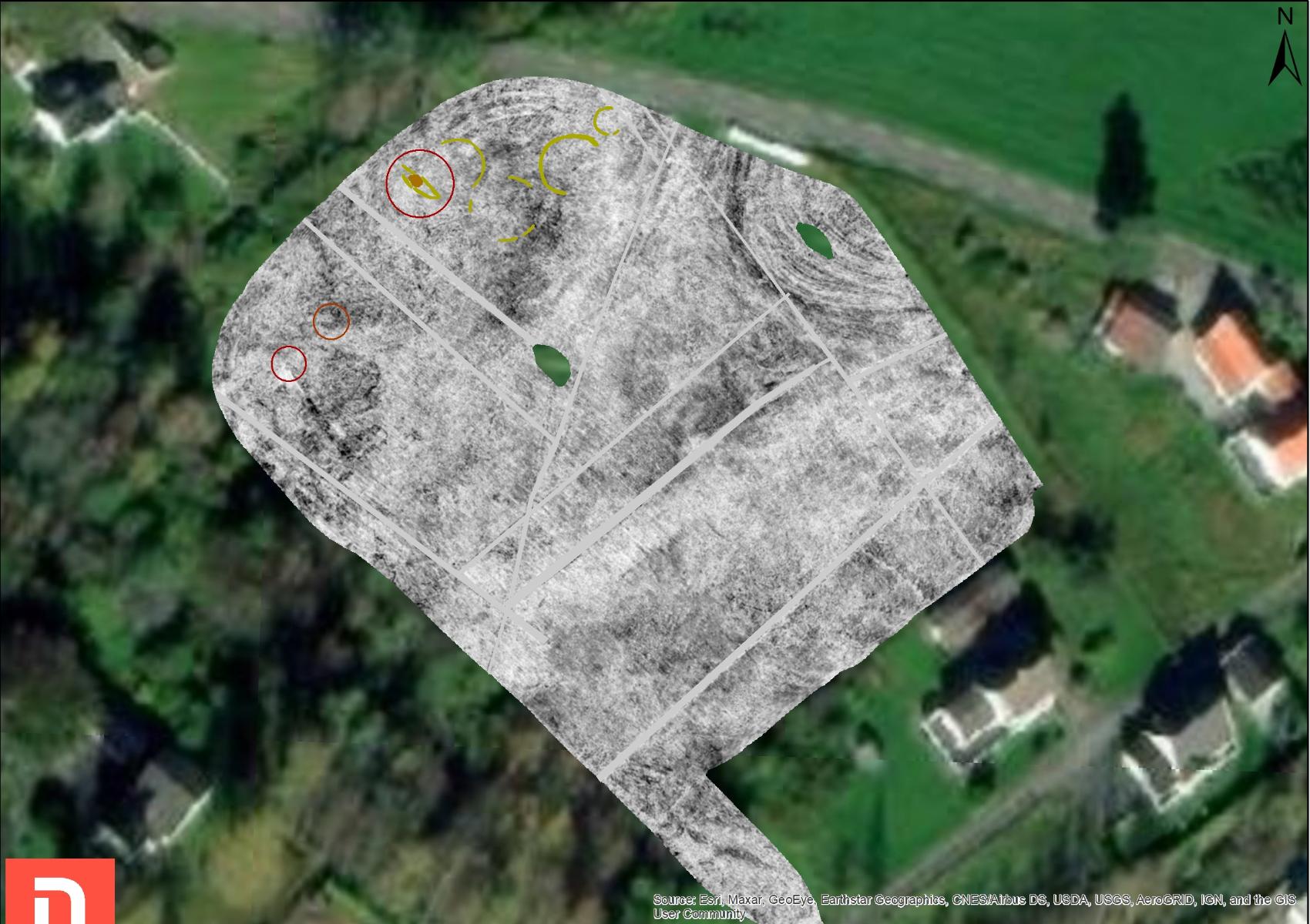 Местоположение лодок (отмечены черными эллипсами) было обнаружено с помощью радара, который был установлен на небольшом автомобиле, изображенном на этой фотографии. Image Credits: Jani Causevic/NIKU