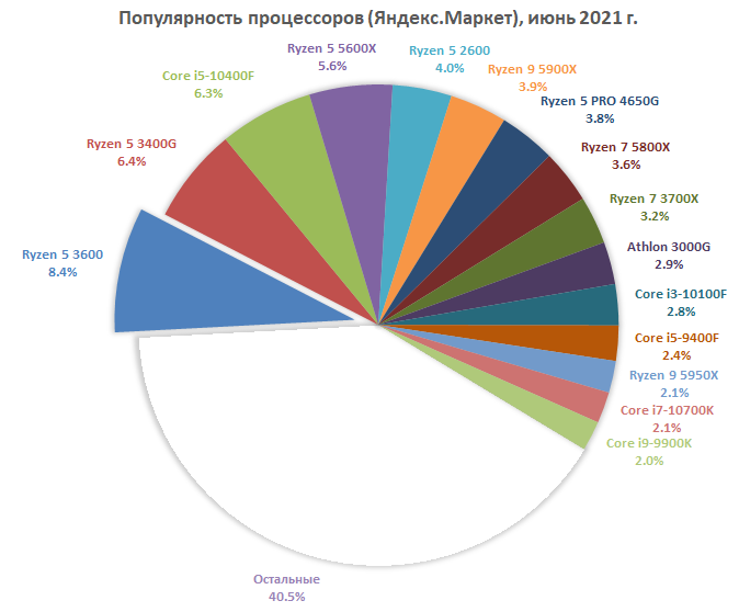 Как позднее оказалось, в реальных задачах разница между конкурентами не так велика, как в идеальных условиях синтетических тестов. Именно поэтому обычным пользователям в первую очередь была важна цена. Вот только AMD отказалась от выпуска гибридных процессоров с мощной интегрированной графикой Ryzen 4000 на массовый рынок. Мало того, даже спустя 8 месяцев после появления новой серии, мы так и не увидели недорогих камней Ryzen 5 и Ryzen 3. Время шло, ничего не менялось, а массовый покупатель всё больше смотрел в сторону Intel, поскольку там за те же деньги предлагают гораздо больше. В данном случае мы не говорим о высокопроизводительных процессорах, поскольку их доля никогда не была большой. Что же, ниже можно увидеть результаты гениальной маркетинговой политики ребят из AMD.