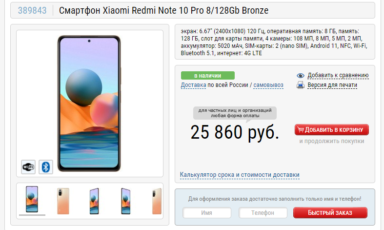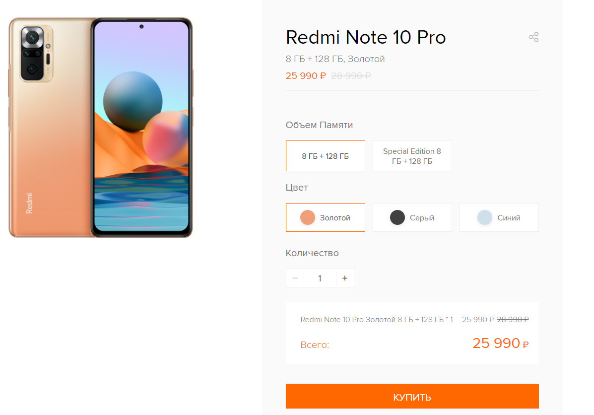 Ещё год назад столь мощная камера устанавливалась на аппараты стоимостью свыше 1000 долларов, а сегодня у каждого из наших читателей есть реальная возможность стать владельцем новой технологии меньше чем за 26 000 рублей. Отметим, что Redmi Note 10 Pro немного дороже своих предшественников. Судя по всему, модуль камеры не позволяет сбросить цену до минимума, но, к счастью, подоспели первые летние скидки. Так, официальный представитель Xiaomi в РФ предлагает дисконт в районе 3000 рублей, что станет настоящим подарком для тех, кто ждал появления нового Redmi Note 10 Pro в магазинах. Стоит учитывать, что скидка не вечна, но есть и другой вариант: заглянуть в Регард. Здесь цена смартфона уже не будет расти, поскольку 25 860 рублей – это уже конечная стоимость на данный момент.