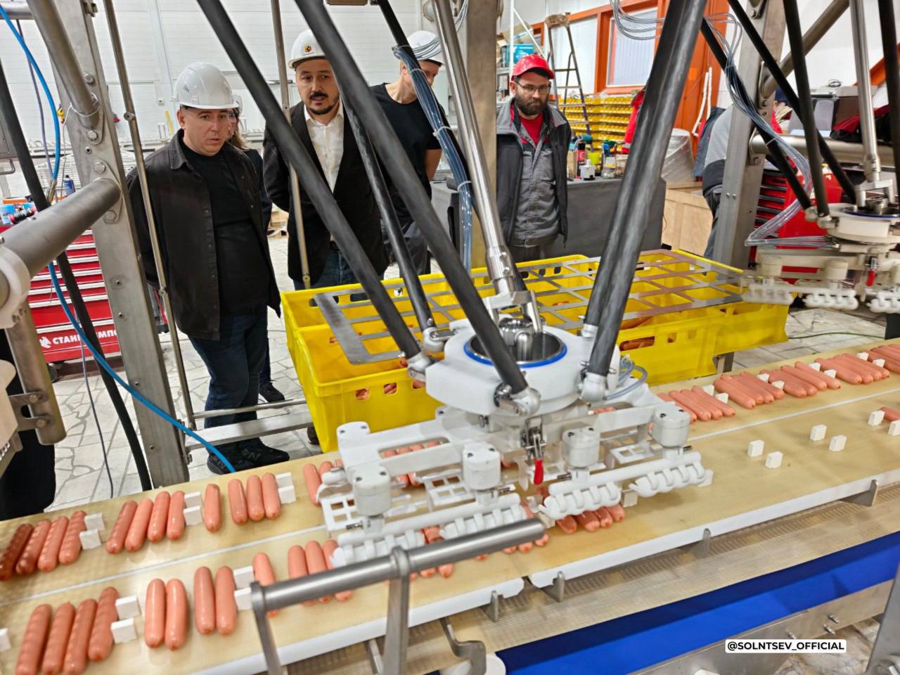 При своей кажущейся на первый взгляд несерьёзности, трудно придумать более важное для государства производство, чем пищевое. Импортозамещение потихоньку добирается и до этой отрасли, и вот губернатор Оренбургской области Евгений Солнцев сообщил о том, что в возглавляемом им регионе разработали первый отечественный роботизированный укладчик сосисок.