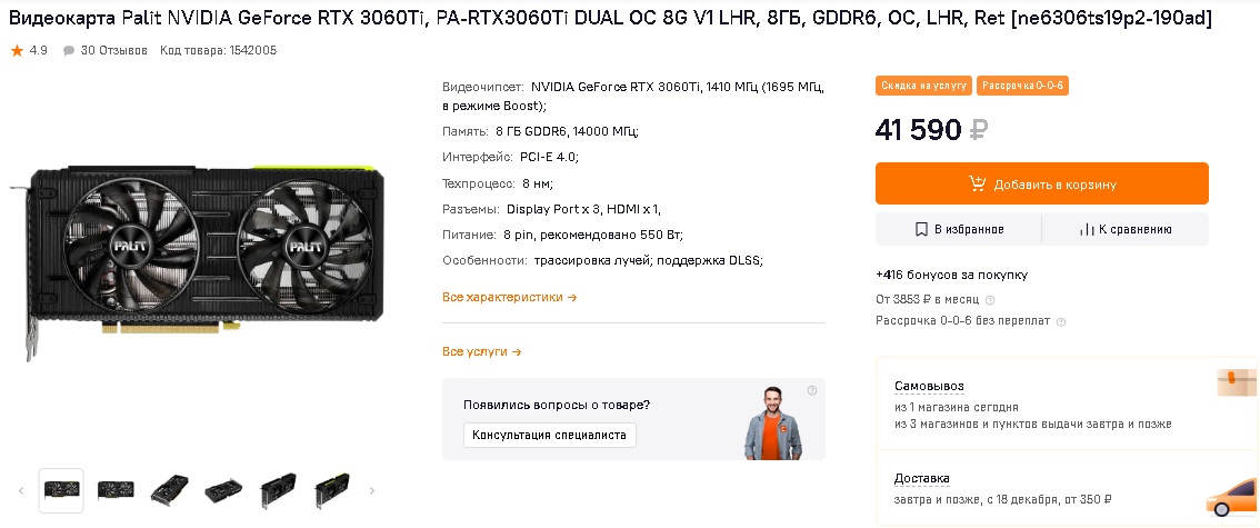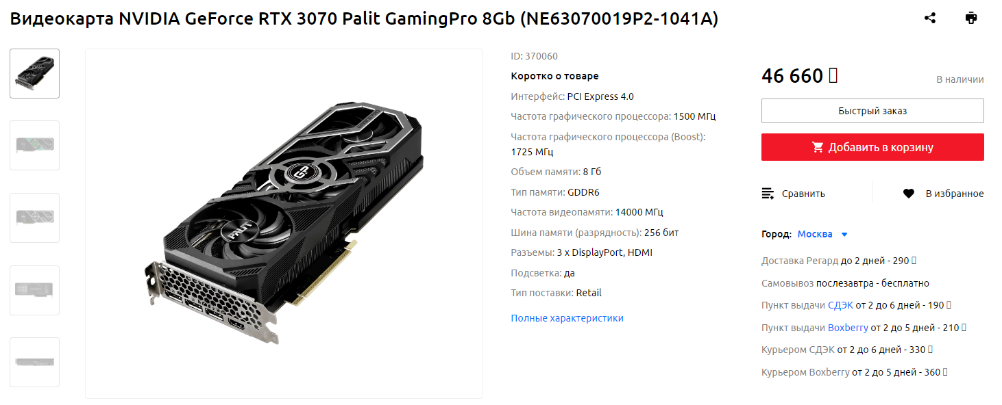 Еще в начале месяца эти модели продавались от 32 тысяч рублей, причем не 8 гигабайтный вариант, а именно старая добрая 12-гиговая версия. Видеокарта подорожала практически на 15%. Старшая Nvidia RTX 3060 Ti в свою очередь подросла еще на 1,600 рублей.