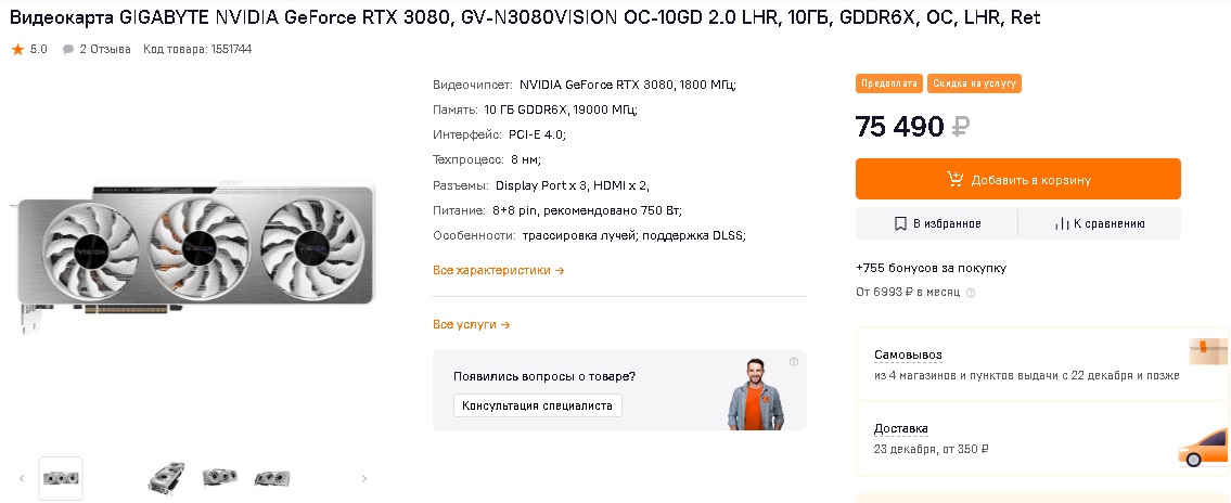 Ранее можно было приобрести исполнение получше, в лице Palit GameRock за 73 тысячи рублей, а еще раньше RTX 3080 обошлась бы 63 тысячи рублей.