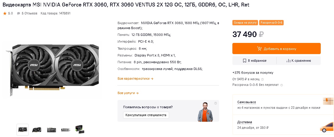 Бюджетная Nvidia GeForce RTX 3060 подорожала до 37,490 рублей