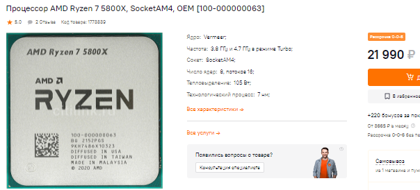 Если уж советовать процессор AMD, то стоит остановиться на Ryzen 7 5800Х. Этот процессор будет радовать вас много лет, но точно не имеет перспективы для апгрейда. Да, можно поставить более скоростной Ryzen 9 5950Х, но через 4 года такой камень будет считаться сильно устаревшим и проигрывать в играх и рабочих задачах какому-нибудь Ryzen 5 9600Х. Здесь и сейчас Ryzen 7 5800Х представляет собой хорошую покупку, но с минимальными перспективами.