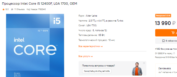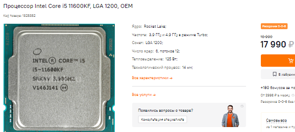 За 22 590 рублей можно купить Core i5-12600KF. Здесь нужно понимать, что очень многое в вашей системе зависит от видеокарты. Очевидно, что камень нового поколения быстрее, но это в синтетических тестах, а в реальной сборке с GeForce RTX 3060 разница между ними будет стремиться к нулю. Вот и получается, что вы можете сэкономить, почти не потеряв в быстродействии. В перспективе Core i5-12600KF можно будет заменить на Core i7-13700 или даже на более мощный камень (например, Core i9-13900). За счёт этого вы получите дополнительный буст, хотя пока для запуска игр и стандартных задач хватит и Core i5-12600KF.