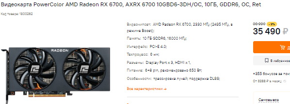 Некоторые эксперты отмечают, что сегодня чуть ли не самой выгодной видеокартой стала Radeon RX 6700. Возможно, если у вас нет лишних 5000 рублей, то вы сможете смириться со снижением видеопамяти до 10 Гб и 160-битной шиной. Вообще перед нами крайне редкое сочетание, которое возникло из-за майнеров. Поскольку все фермеры разбежались, геймерам остаётся пожинать плоды. Хотя сама по себе Radeon RX 6700 не такая уж и плохая.