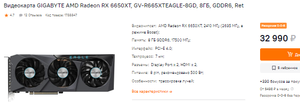 А вот Radeon RX 6650 ХТ хотелось бы видеть на несколько тысяч дешевле. Нам кажется, что сегодня именно эта видеокарта AMD могла бы стать тараном для выхода их кризиса. Увы, но Лиза Су пока не предлагает нам должность внештатного консультанта, поэтому положение у красных остаётся плачевным. Что до Radeon RX 6650 ХТ, то она представляет собой годное решение для любителей компьютерных игр, но немного меркнет на фоне Radeon RX 6700. Уж лучше взять графический чип с 10 Гб видеопамяти.