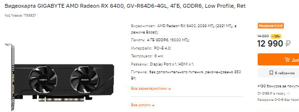 Резкий рост курса рубля привёл к подорожанию даже бюджетных видеокарт. Сегодня за Radeon RX 6400 просят на 13% дешевле, чем было ещё на прошлой неделе. Эта видеокарта больше подходит для ознакомления с играми, а также неплохо тянет танки и стрялялки. Если вам этого достаточно, то почему бы не сэкономить, ведь такой шанс предоставляется не всегда. Помните, что Radeon RX 6400 плохо работает на старых компьютерах, где отсутствует поддержка PCIe 4.0. Ну а если у вас новая машина, и вы не хотите переплачивать, то эта видеокарта может стать для вас неплохой временной заменой более дорогих решений.