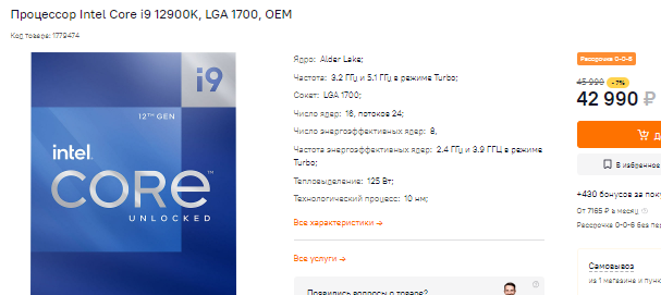 Начнём с Core i9-12900K. У этого процессора есть сразу несколько ключевых преимущества. Так, если у вас есть деньги на мощную машину, но вы не хотите переплачивать на новинки, то с видеокартой уровня GeForce RTX 4070 Ti можно получить близкую к максимальной производительность. При этом вы потратите в 2 раза меньше денег, а Core i9-12900K с лёгкостью вытянет мощную видеокарту. При этом вам не нужно покупать дорогую оперативную память и материнскую плату, ведь сам процессор хорош из коробки, а разгон только увеличит конечную стоимость системы.