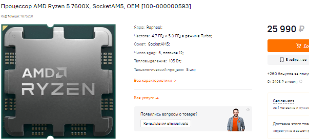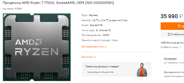 Ryzen 7 7700X только набирает популярность и пока не может претендовать на лучшие места в топе продаж. Процессор очень перспективный, но способен завоевать сердца геймеров только в том случае, если на рынке появятся материнские платы за 100-150 долларов. Пока же под Ryzen 7 7700X предлагаются решения за 300 долларов и выше, ни о каких рекордах не может быть и речи. Ну и не забывайте, что с таким процессором нужна мощная видеокарта, ведь середняк типа GeForce RTX 3060 не способен раскрыть его потенциал.