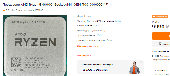 Core i5-11400F и Ryzen 5 4600G завершают наш список неочевидных процессоров. В первом случае вы получаете неплохой результат и штатную систему охлаждения в комплекте. Из-за параллельного импорта в последнее время в РФ стали ввозиться преимущественно процессоры в комплектации ОЕМ. Core i5-11400F неплох в тандеме с видеокартой до 30 тысяч рублей, поскольку больше ничего он уже не вытянет, ну а Ryzen 5 4600G и вовсе не нуждается в видеокарте. Это возможность сэкономить немалую сумму, ведь внутри скрывается интегрированная графика. Гонять в новинки у вас точно не получится, но танки и тем более шутеры будут работать без особых трудностей. Оба процессора пользуются минимальным спросом, поэтому и стоят недорого. Самое время воспользоваться тем, что многие пользователи не замечают.