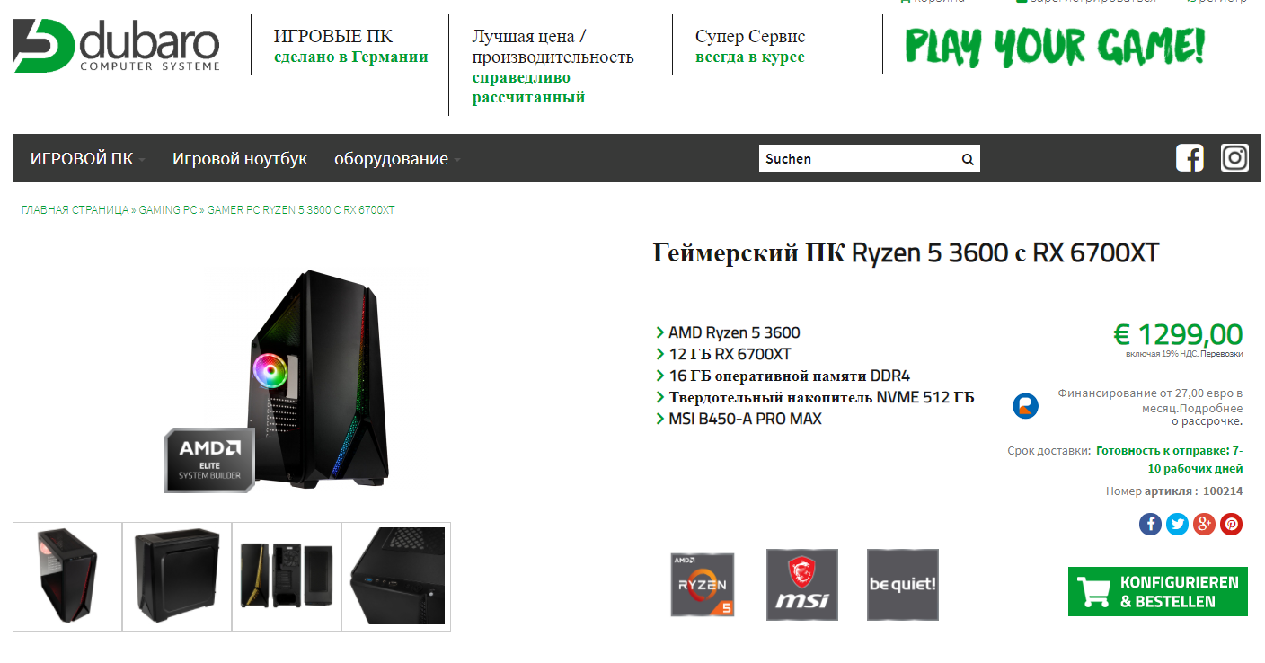 Новая видеокарта Radeon RX 6700 ХТ начала поступать в российские магазины. Цены не радуют, ведь 90 и выше тысяч, которые просят отдать за подобный продукт, выглядят крайне противоречиво. Сегодня мы изучим предложения европейской розницы. На самом деле мы остановимся только одном магазине, который является официальным партнёром AMD в Германии, но во многих других торговых точках цены примерно такие же.