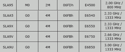 - Core 2 Duo E6540 (2.33 ГГц) -> SLAA5, степпинг G0;