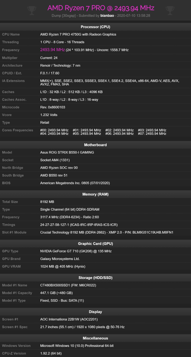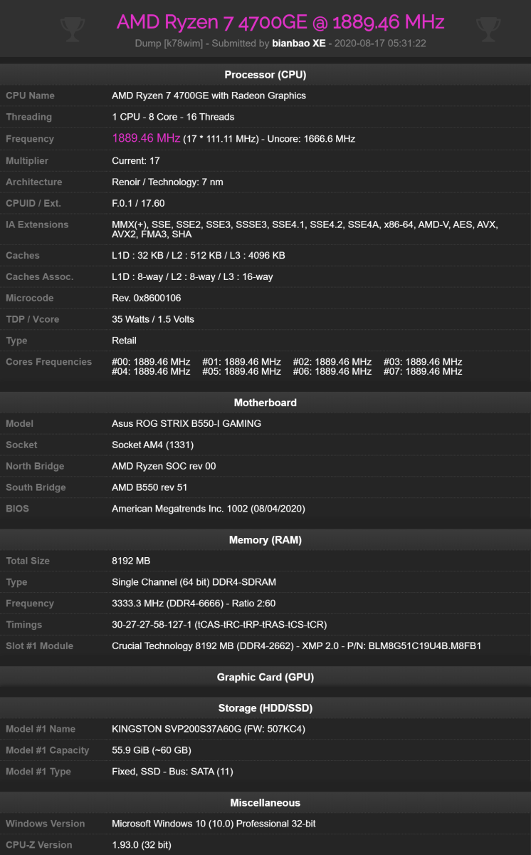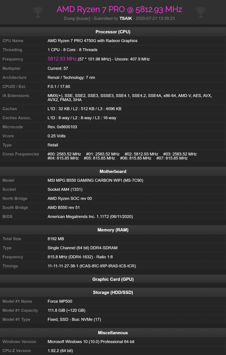 Этого следовало ожидать после появления первых достойных результатов экстремального разгона памяти с использованием гибридных процессоров AMD Renoir, и теперь можно говорить о свершившемся факте – мировой рекорд в этой сфере принадлежит тайваньскому энтузиасту Bianbao XE, который использовал процессор AMD Ryzen 7 4700GE в исполнении Socket AM4 и материнскую плату Asus ROG Strix B550-I Gaming на основе набора логики AMD B550.