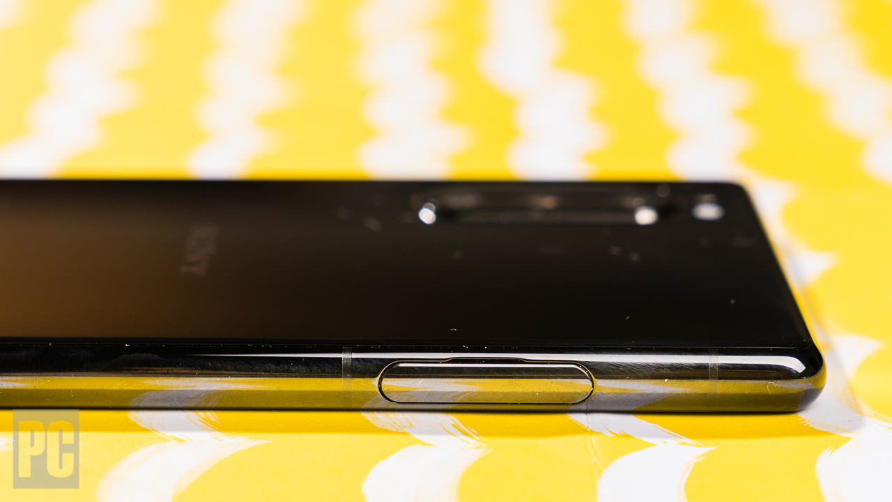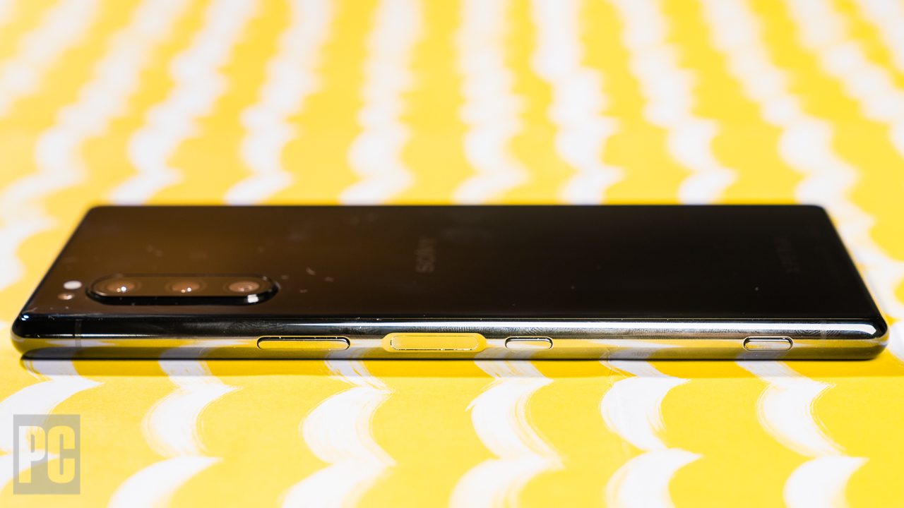 Корпус Sony Xperia 5 имеет алюминиевый каркас и защиту от воды/пыли, соответствующую степеням IP65 и IP68. Сзади и спереди установлено стекло Gorilla Glass предпоследнего поколения. Экран смартфона не имеет выреза, что должно порадовать многих пользователей. Биометрический сенсор установлен на правом торце. Там же есть фирменная дополнительная клавиша для активации камеры.