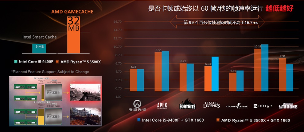 Стоимость новинки составляет 1099 юаней (около $150), поэтому прямым соперником для новинки стал Intel Core i5-9400F, что и отражено на слайдах. При этом в большинстве игровых тестов в дуэте с видеокартой NVIDIA GeForce GTX 1660 конкуренты показывают схожую производительность, а в популярном сетевом шутере Counter-Strike процессор Ryzen 5 3500X и вовсе выгодно отличается от своего оппонента.