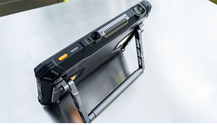 В комплект поставки каждого планшета входит эксклюзивная подставка с металлической ручкой. Это тщательно продуманный аксессуар вида «два в одном», заметно повышающий удобство. Ручка обеспечивает надёжный захват для переноски устройства одной рукой и работы с ним на сложных участках. В разложенном виде ручка превращается в прочную откидную подставку, благодаря которой можно просматривать изображения на планшете под разными углами без помощи рук. Подобная функциональность может быть критически важна для комфортного ввода данных, длящихся на протяжении длительного времени видеоконференций или детальных осмотров окружения. В результате пользователи смогут превратить любое место в функциональное рабочее пространство.