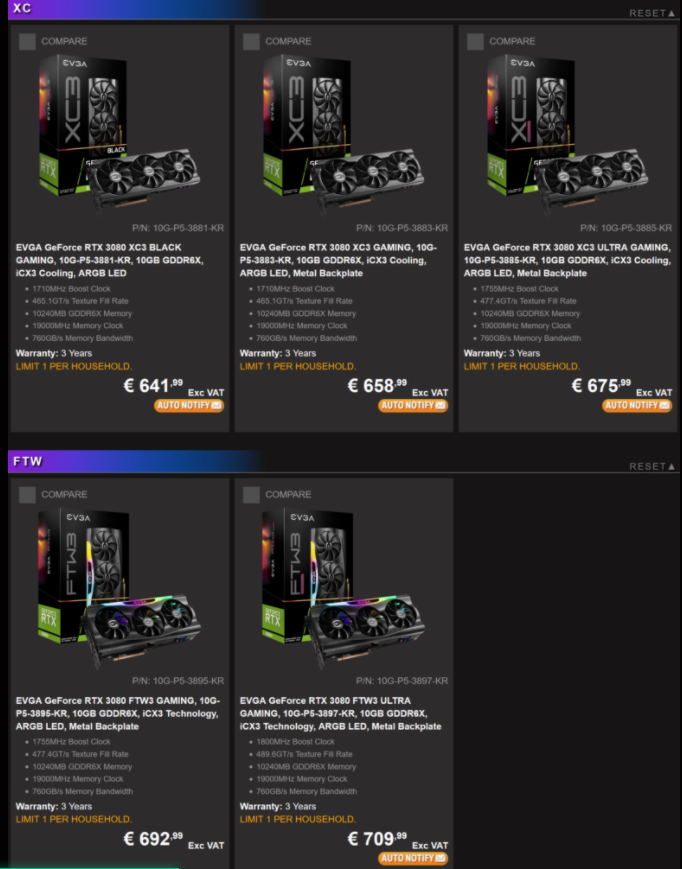 Причины этому явлению лежат на поверхности, но странно то, что не было вообще никаких анонсов. Ниже можно рассмотреть стоимость кастомных моделей от партнёров NVIDIA, которые ещё недавно лежали в магазинах. Как видите, более эффективные и разогнанные варианты стоят дешевле Founder's Edition. Стоили, ведь никто не будет торговать себе в убыток, а значит даже на относительно спокойном европейском рынке грядёт сильное подорожание.