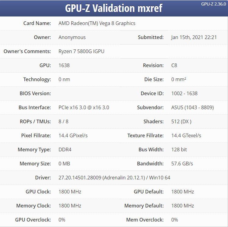 Портал TechPowerUp разместил результаты первых тестов процессора AMD Ryzen 7 5800G Cezanne, который, судя по всему, возглавит линейку десктопных Ryzen 5000G с встроенной графикой. Тестирование получилось не совсем полноценным, так как проводилось только в одной программе GPU-z, которая оценивает только графическое ядро. Что касается производительности самого процессора, то там должно быть всё на уровне, ведь архитектура Zen 3 уже наделала много шума.
