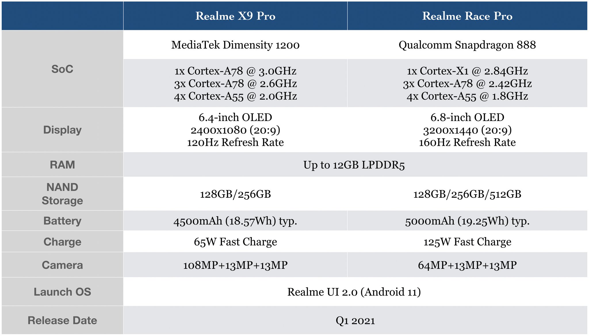 Известный инсайдер TechTipster опубликовал в своём Twitter подробные данные о новом флагмане от Realme: Race Pro. Как ранее и предполагалось, в нём будет установлен топовый процессор Qualcomm Snapdragon 888.