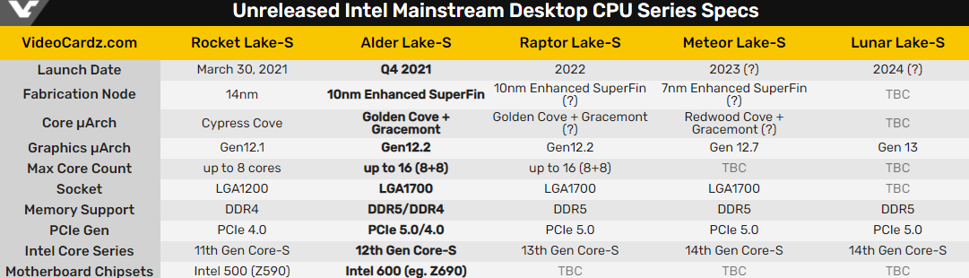 Пока компьютерная общественность горячо обсуждает скорое появление на полках магазинов настольных процессоров Intel 11-го поколения, в распоряжении ресурса VideoCardz оказалась парочка слайдов, демонстрирующих некоторые ключевые характеристики их преемников семейства Alder Lake.