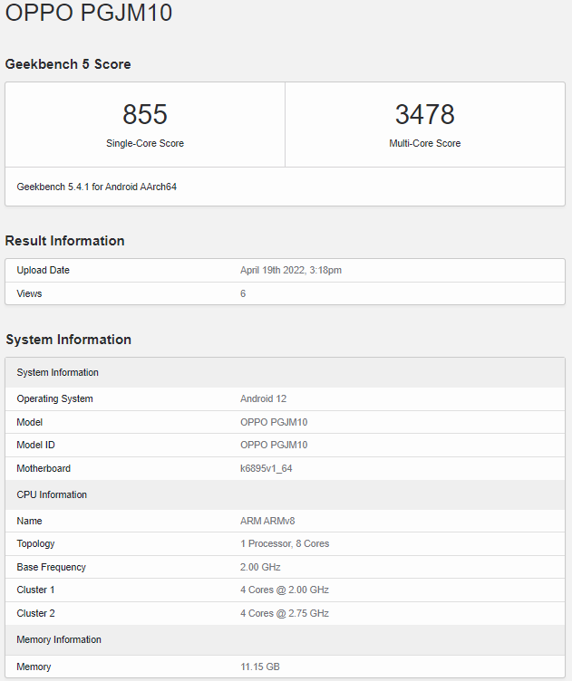 OPPO K10 5G подтвердил это благодаря своему появлению в Geekbench. Смартфон имеет номер модели «OPPO PGJM10» и действительно включает 4 ядра с тактовой частотой 2,75 ГГц, а также еще 4 ядра с тактовой частотой 2 ГГц.