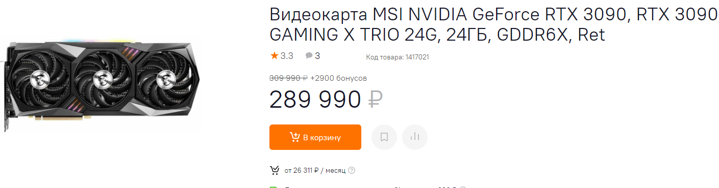 Поскольку речь пойдёт о флагманах, то лучше всего начать с GeForce RTX 3090. Увы, но модели с приставкой «Ti» в российские магазины не завозят. Вполне возможно, что на европейском, китайском и американском рынках достаточно тех, кто готов платить любые деньги за скоростной графический чип. Это значит, что вам остаётся обычная GeForce RTX 3090. Никаких сюрпризов: максимальный уровень производительности во всех играх в 4К, 24 Гб самой быстрой памяти в истории и невероятный потенциал, позволяющий позабыть о необходимости покупать новую видеокарту как минимум 5 лет.
