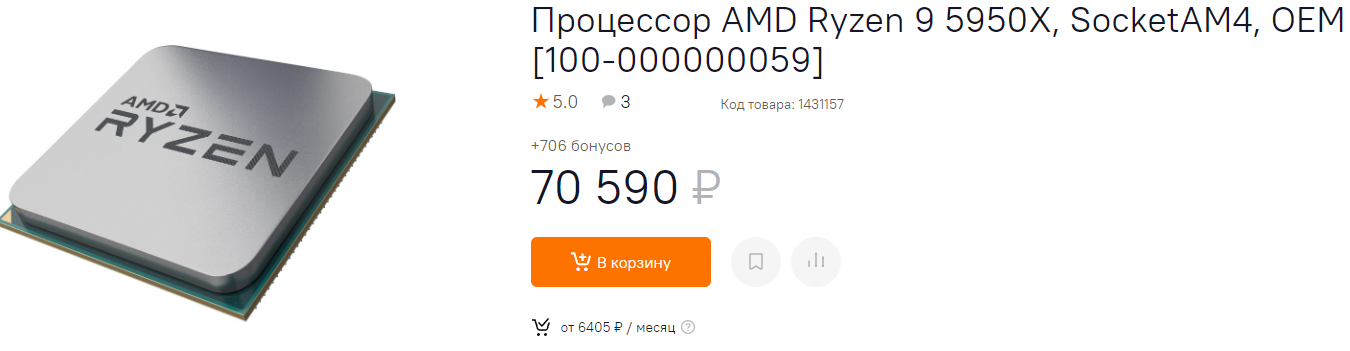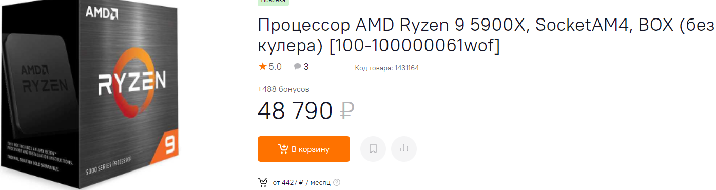 Вполне неплохим выбором станет Ryzen 9 5900X. Давненько мы не видели, чтобы этот камень стоил ниже 50 000 рублей. Признаём, в Европе и США цены ещё ниже, но пока действуют санкции, ожидать аналогичных скидок в РФ не приходится. Вообще нужно понимать, что чем менее требователен сам процессор, тем дешевле вам обойдётся система. Сюда прибавляйте не только уже указанные компоненты, но и блок питания, ведь в последние годы камни становятся всё более прожорливыми.