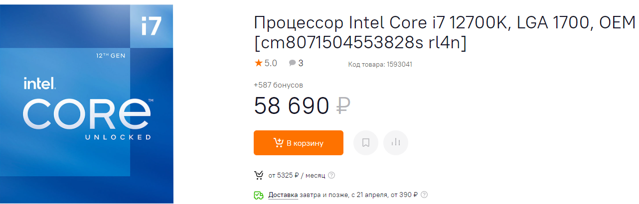Неплохой альтернативой флагманам может выступить Core i7 12700K. Не стоит обольщаться, потратиться на него придётся по полной программе, ведь без правильной материнской платы и оперативной памяти он не сможет достигать максимальных показателей, которые вы видели в тестах в сети. И всё же, сэкономить можно, а если у вас не стоит задача выжать всё из нового камня, то потеря 7% по сравнению с флагманами позволит купить дополнительный твердотельный накопитель.