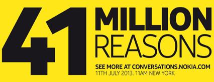 На страницах своего блога Nokia открыто сообщает, что на мероприятии 11 июля в Нью-Йорке в 11 утра по местному времени будет представлено нечто, символически связанное с числом "41 миллион".