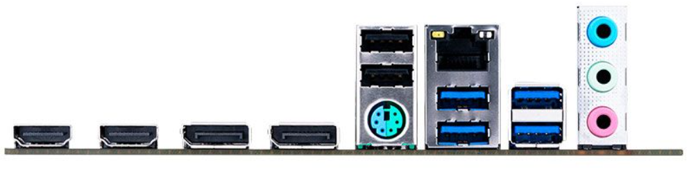 Очень интересно выглядит I/O панель MS-Milestone i7-11800H Plus, предлагая широкие возможности для подключения дисплеев. Он имеет два порта HDMI и два DisplayPort. На задней панели также находится комбинированный порт PS/2, два порта USB 2.0, четыре порта USB 3.2 Gen 1, порт 2,5 Gigabit Ethernet и три 3,5 мм аудиоразъема.